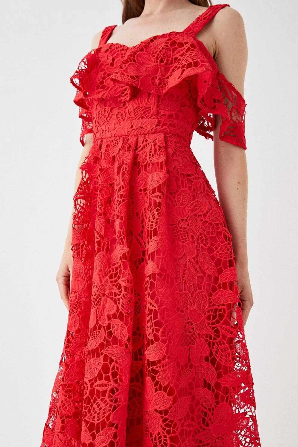 Coast Bardot Frill Top Lace Midi Dress