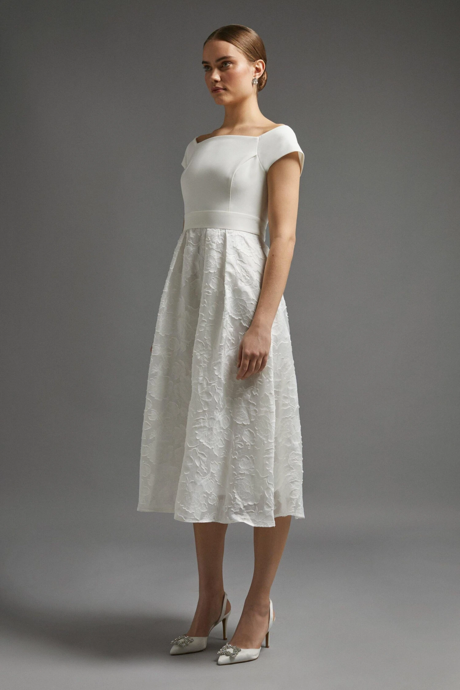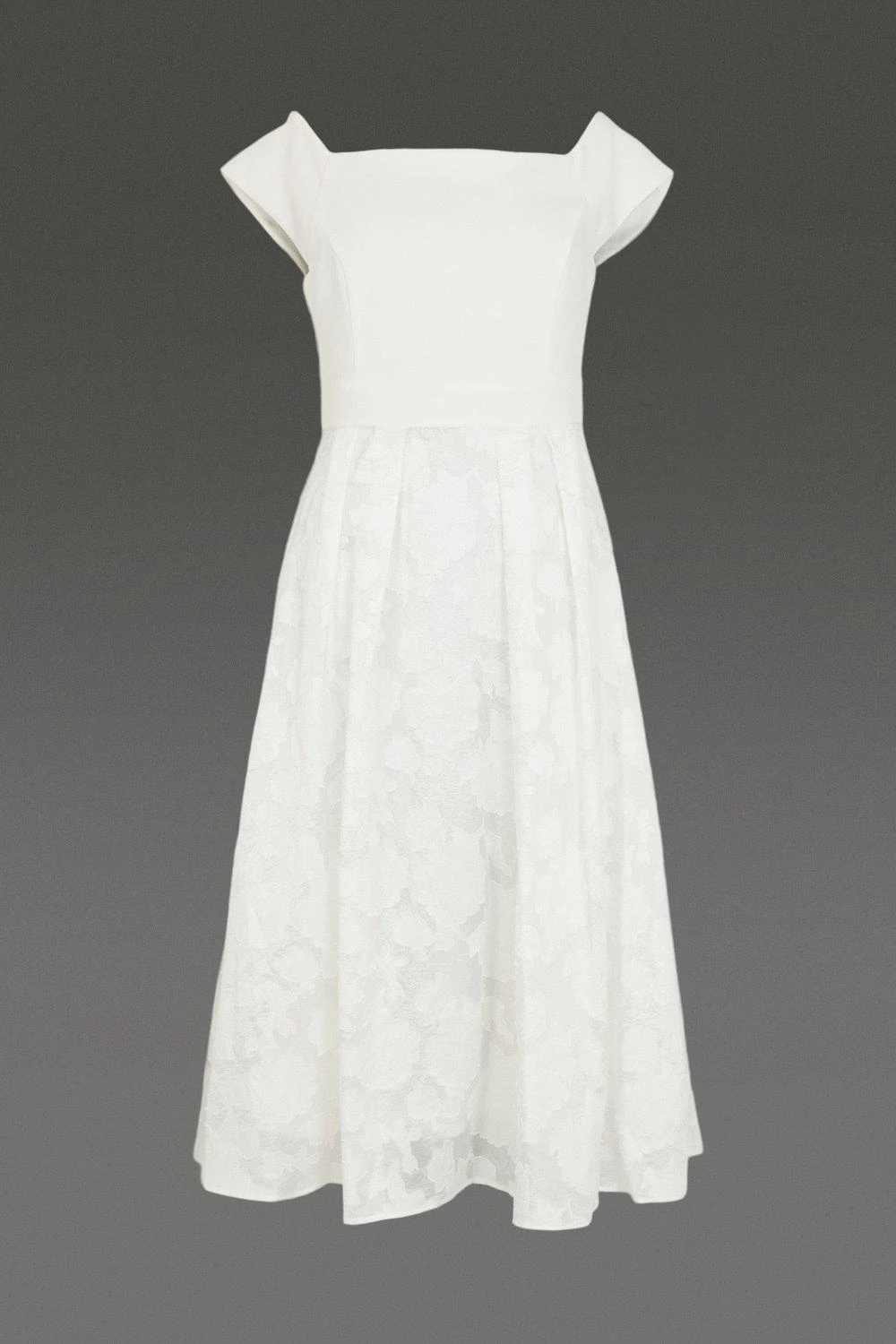 Brigitte Bardot herself could not have dreamt up a more stunning style. Featuring an off-the-shoulder bodice, nipped-in waist and intricate tonal embroidery, this romantic design will leave your wedding guests staring (for all the right reasons).