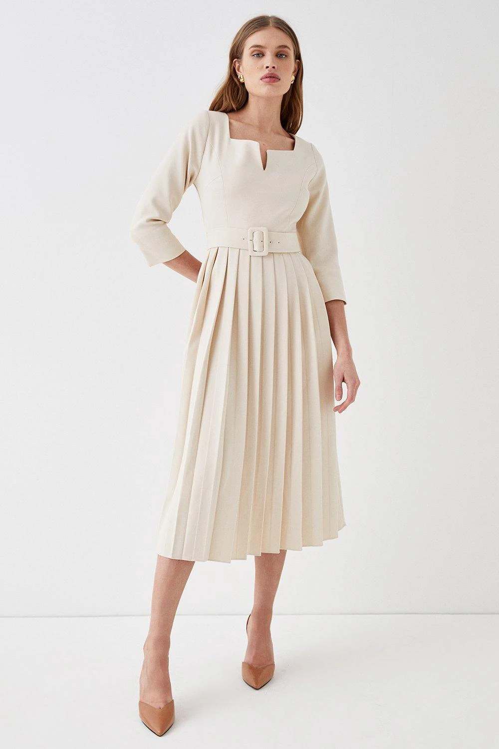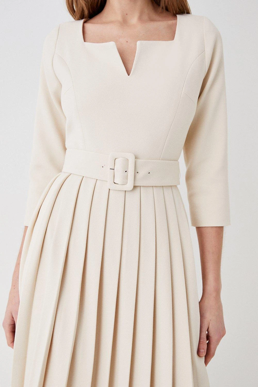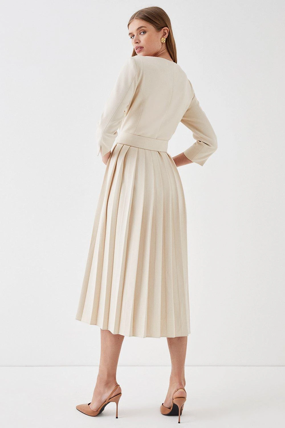 Main: 62% Polyester, 34% Viscose, 4% Elastane. Lining:100% Polyester. Dry clean only. Length: 125cm