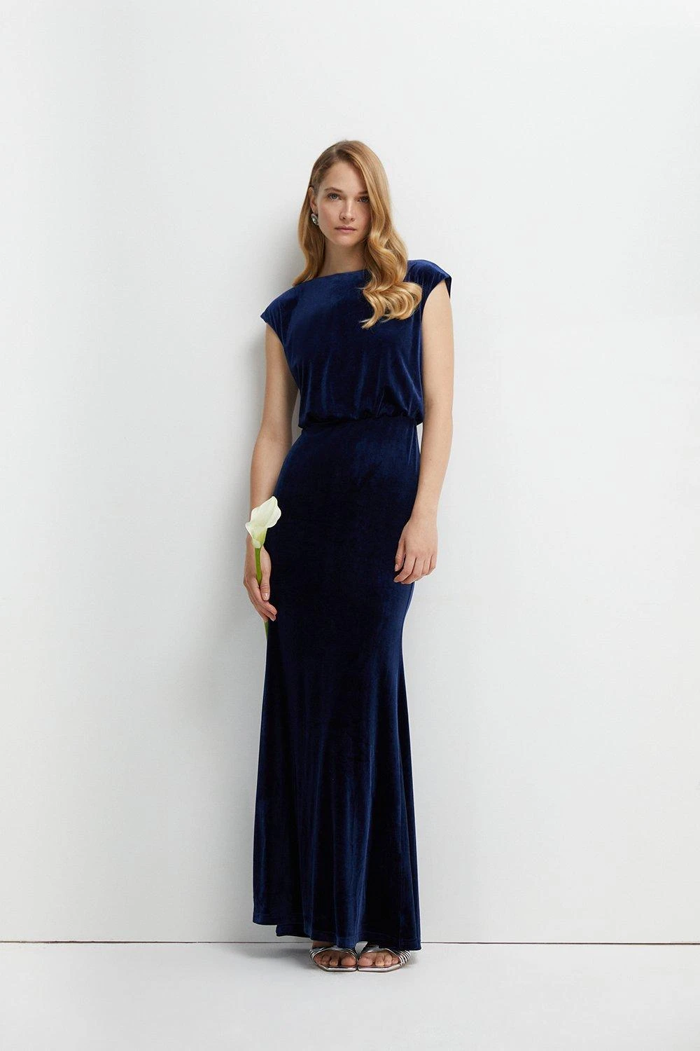 Inspired by lavish affairs, this velvet dress will take pride of place in traditional settings with character. Featuring a round neck, this blouson style is completed by a dramatic train that extends down the back to a sweeping length.