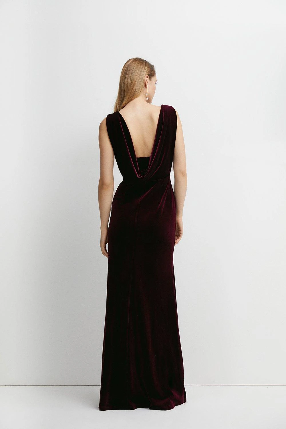Sculpted to a curve-hugging maxi silhouette, this dress is crafted from luxurious velvet for a truly showstopping bridesmaid style. A back cowl drape surprises the spectator for an unexpected twist on this paired-back design.
