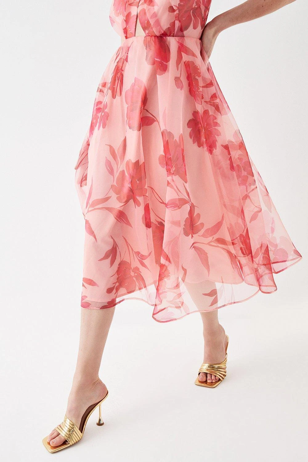 Coast Cross Front Printed Organza Midi Dress
