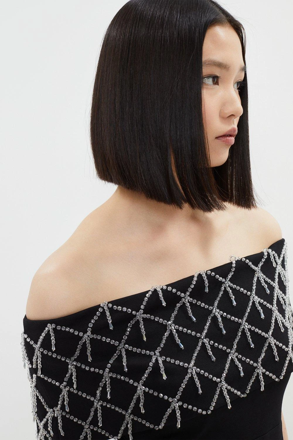 - Neckline: Bardot