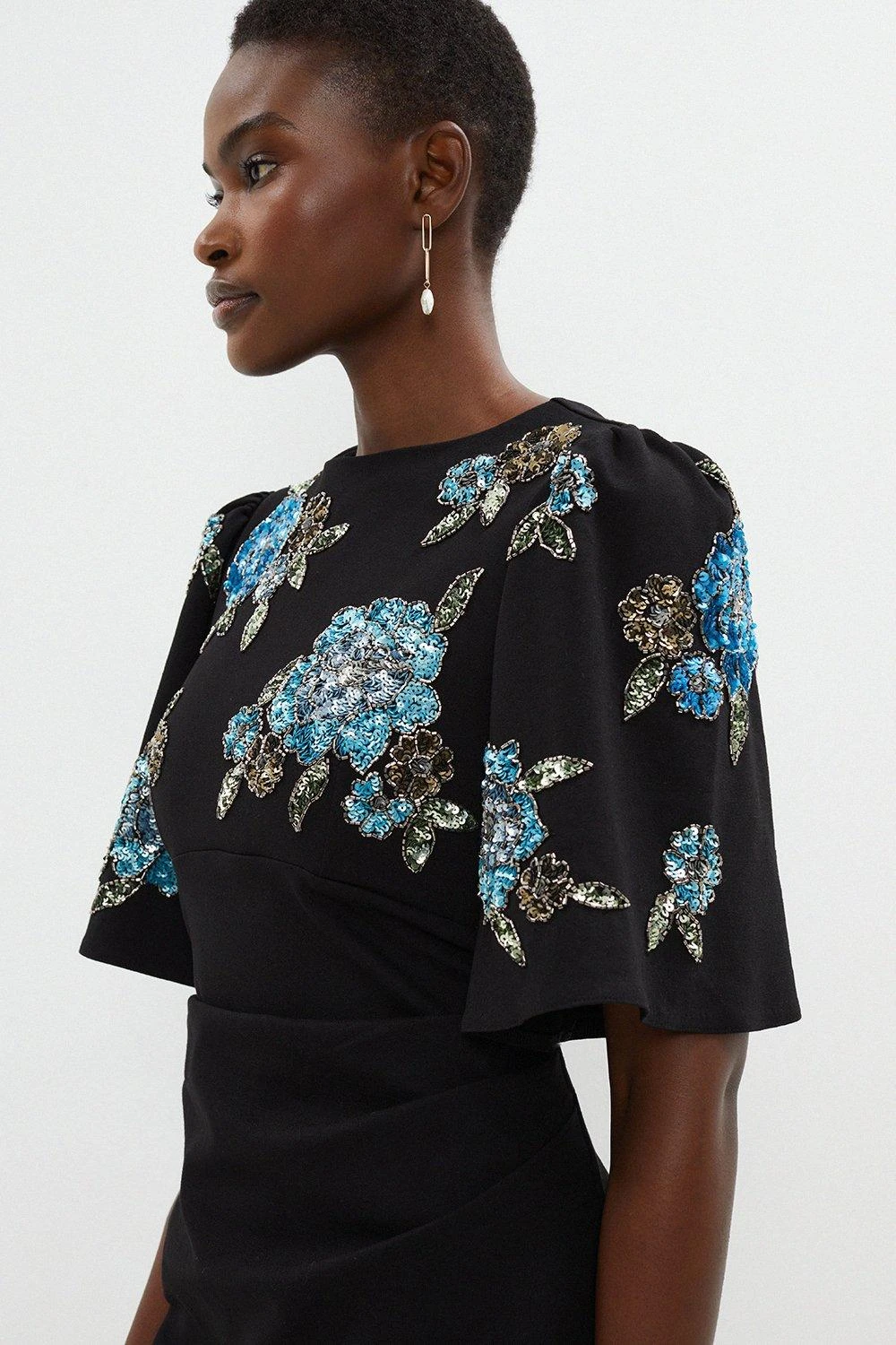 Main: 65% viscose 31% polyamide 4% elastane. Hand wash only. Length: 110cm