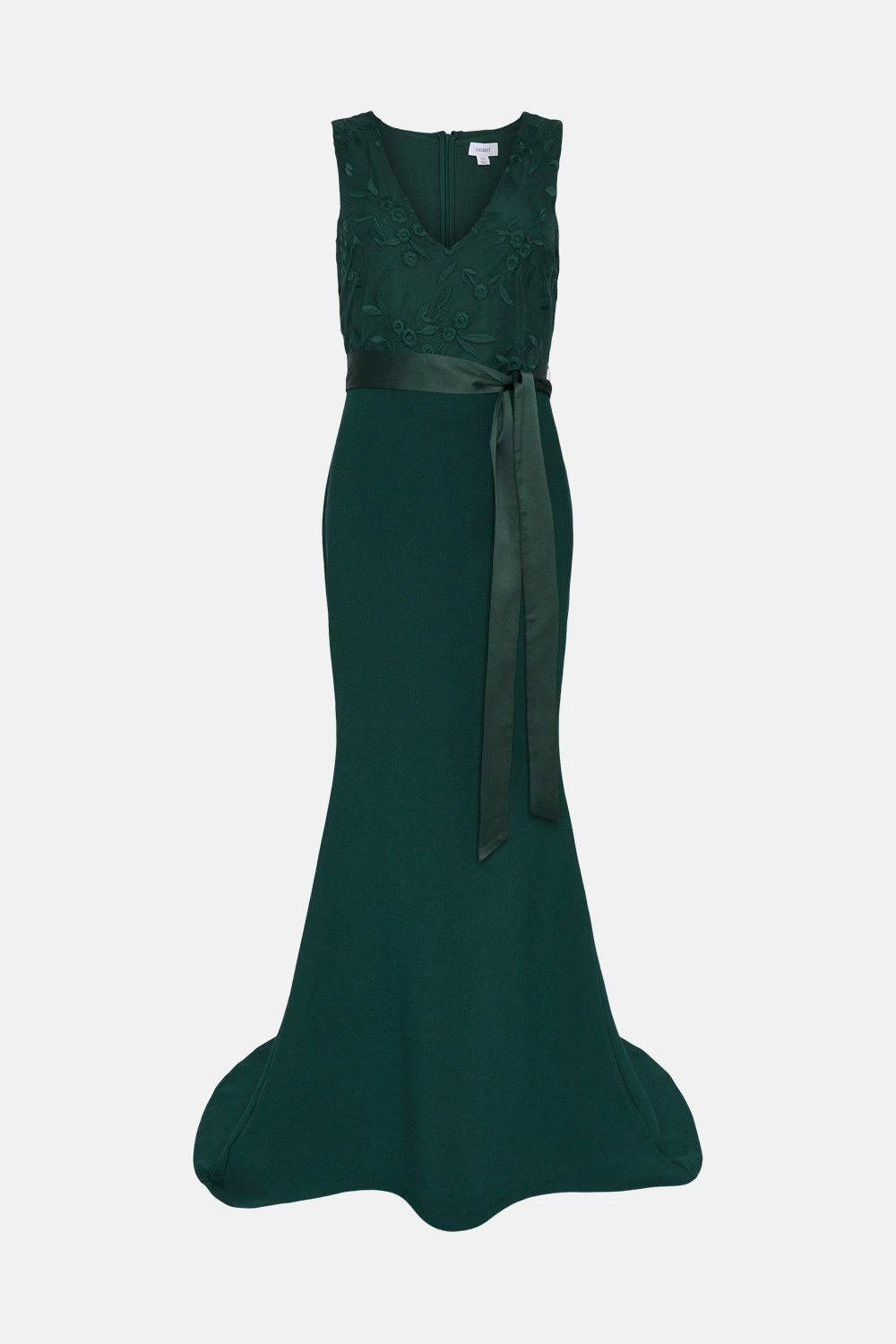 Coast Embroidered Bodice Puddle Hem Maxi Dress