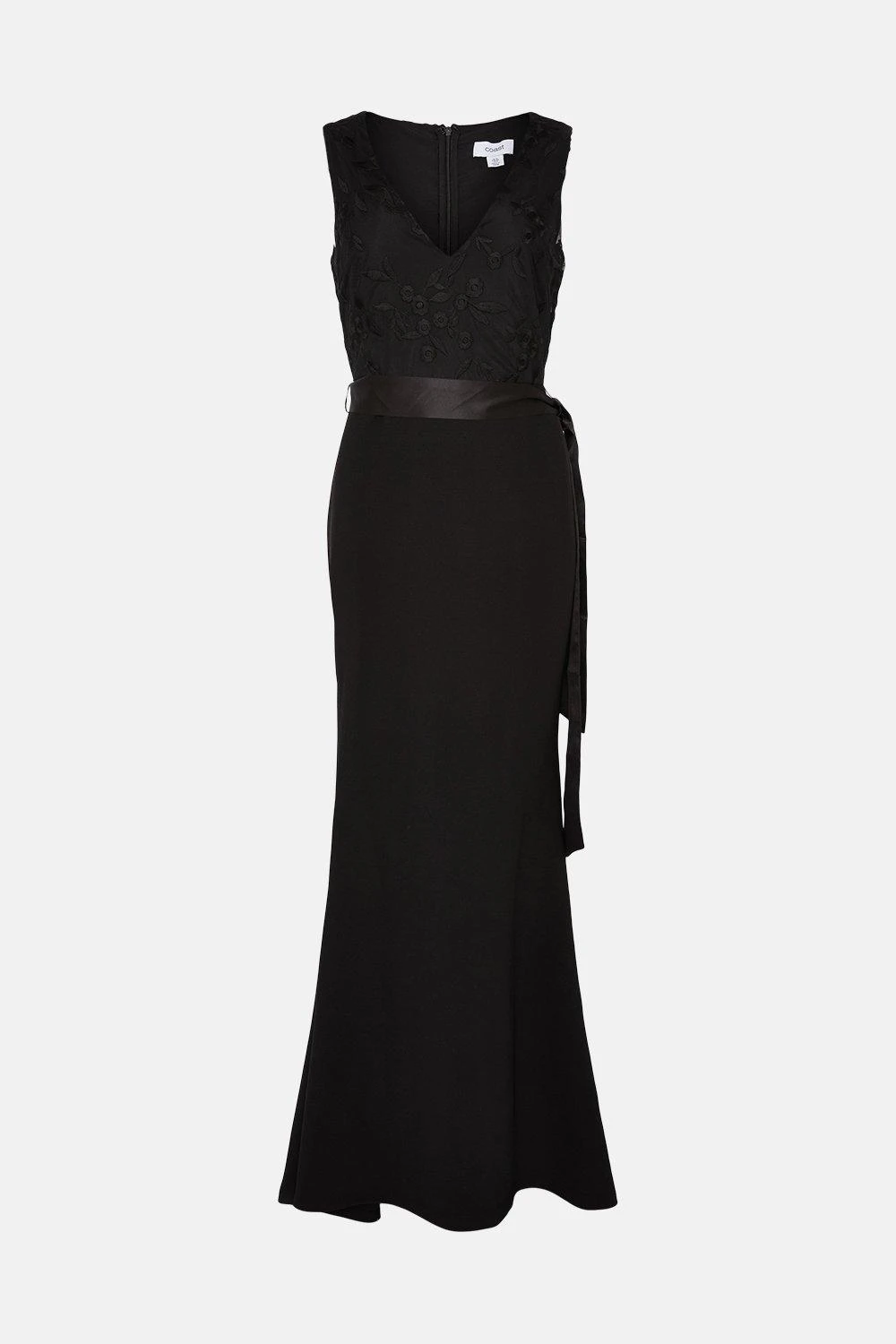 Length 155cm. Main: 89% polyester 11% elastane Main 2: 75% Polyester 25% Polyamide Lining: 100% polyester Belt: 97% Polyester 3% elastane. Wash at 30.