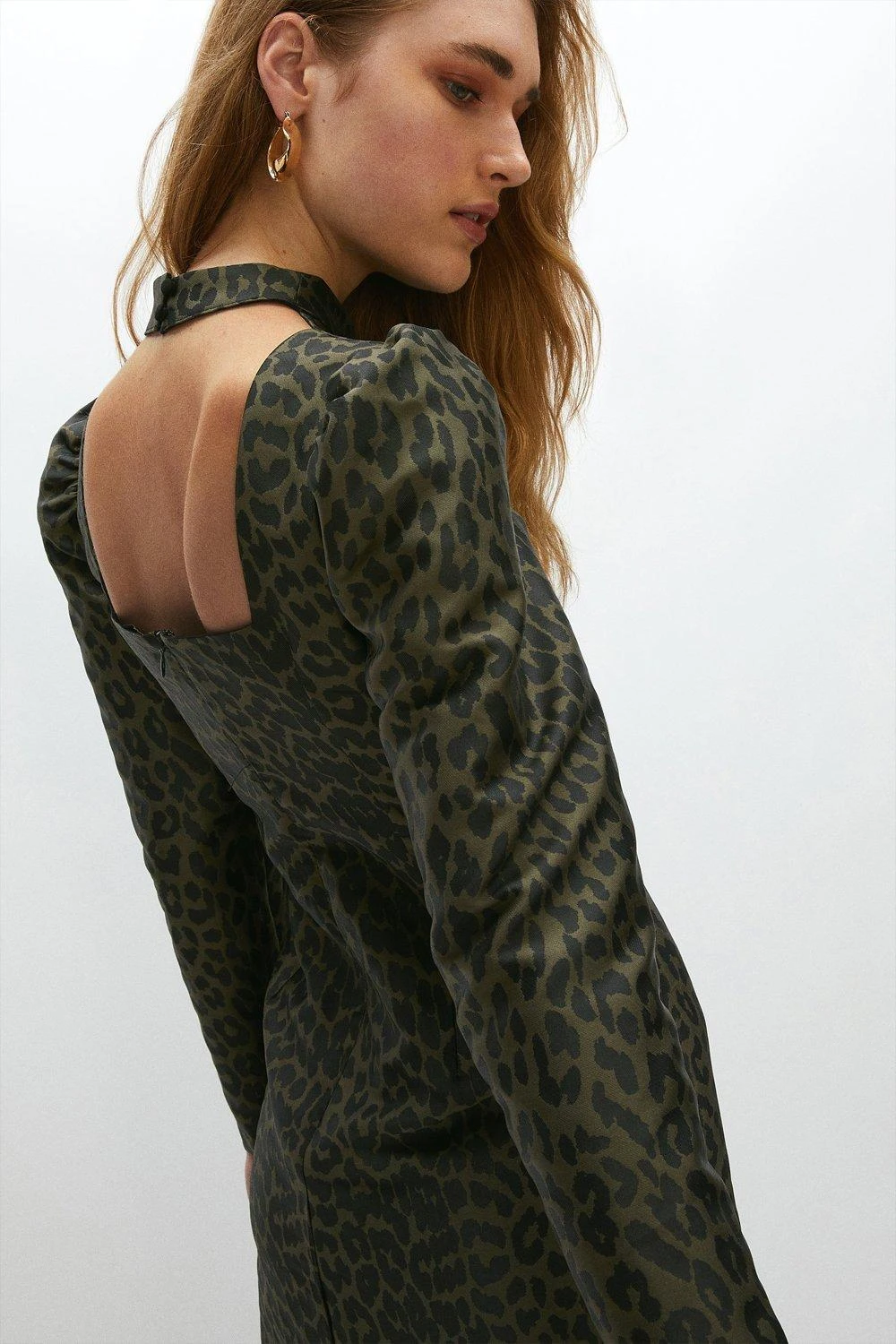 One can never have too many leopard print pieces. Our mini dress shows off an elegant high neck, slightly puffed sleeves, a seductive open back for added appeal and classic animal print. Team it with your favourite heels.