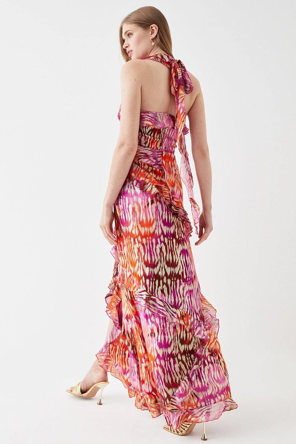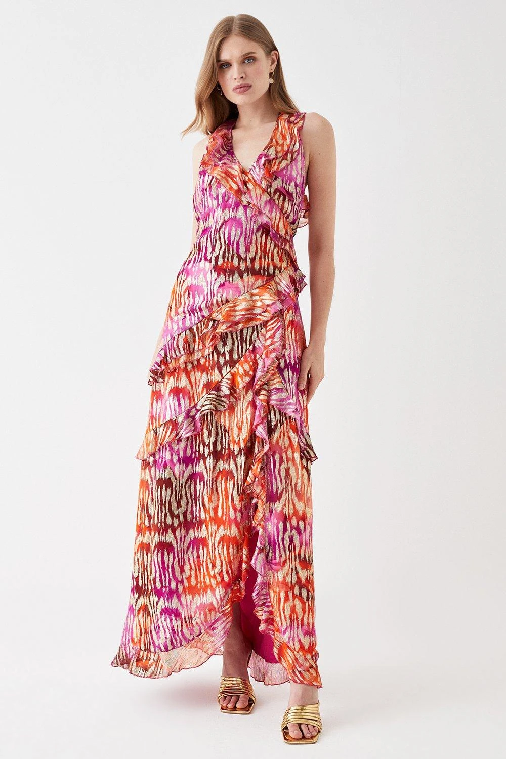 Main: 94% Viscose, 6% Metallised Fibre. Lining: 100% Polyester. Hand Wash Only. Length 150cm.