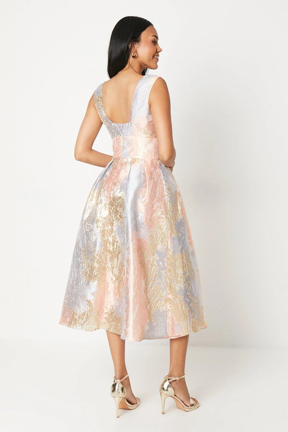 Main: 82% Polyester, 18% Metallised Fibre. Lining: 100% Polyester. Dry Clean Only. Length 128cm.