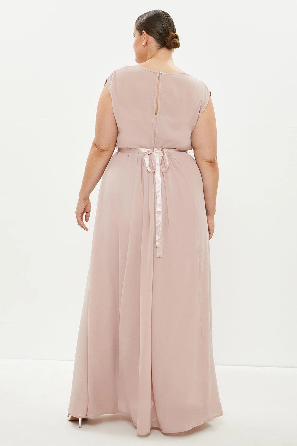 This way for Grecian glamour. Marrying a fluid, semi-sheer overlay with cap sleeves and a floor-sweeping hem, this ethereal maxi dress makes a mesmerising choice for special occasions. The flowing silhouette comes accented with a plaited, embellished belt to subtly cinch in your silhouette – tie it at the back and let the trailing ribbons flutter behind you.