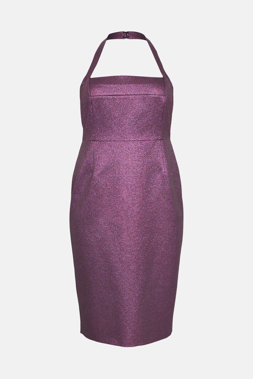 Main: 65% Polyester, 16% Viscose, 13% Metallised Fibre, 6% Elastane. Lining: 100% Polyester. Dry Clean Only. Length 116cm.
