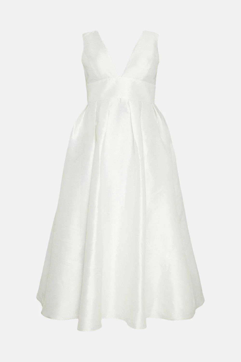 An Audrey Hepburn-inspired design that’s perfect for your big day. This clean-lined satin maxi dress skims the form thanks to its plunging V-neck bodice and wide, full skirt. Simple in its sophistication, it was made for modern minimalists – just add show-stopping heels and a swept-back chignon.