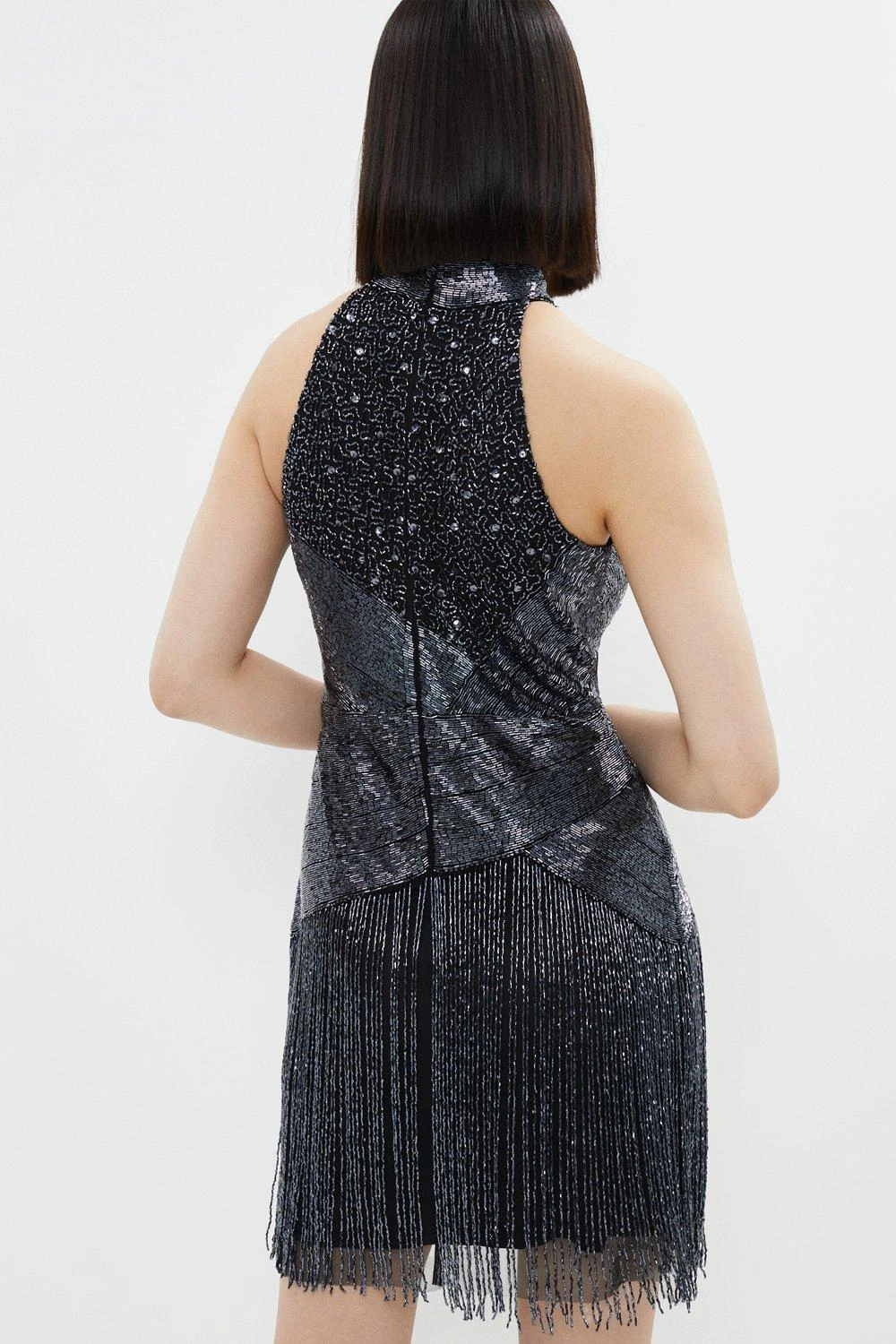 Get the party started in this show-stopping mini dress. Combining opulent tassels with all-over embellishments and a high neckline, it swathes the form in sophisticated sparkle. Team it with sky-high heels for a striking night-out ensemble.