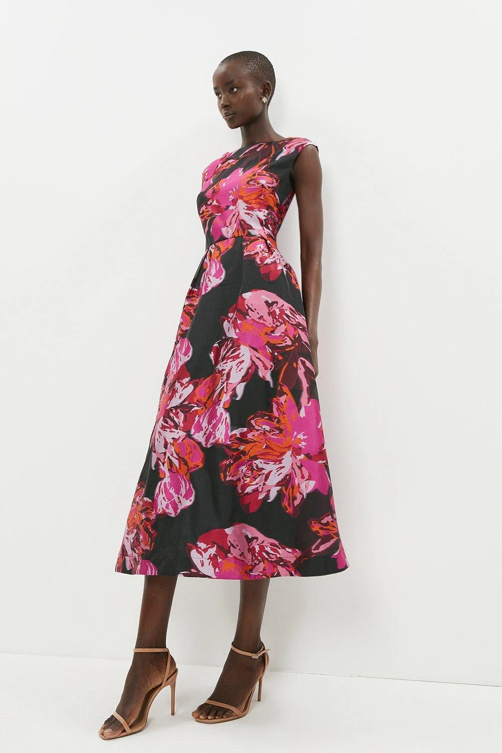 What’s better than a picture-perfect party dress? This show-stopping number shows off a bold placement print and refined jacquard finish, classic boat neckline and a swishy midi skirt. Just add your favourite strappy heels and prepare to dazzle at after-dark events.