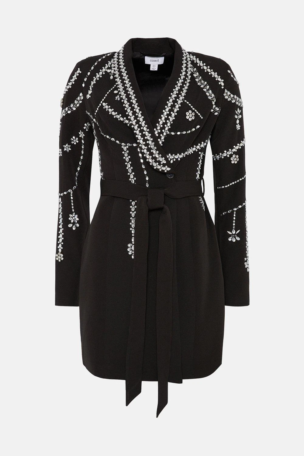 Main: 91% polyester 9% elastane Lining: 100% polyester. Hand wash only. Length: 88cm