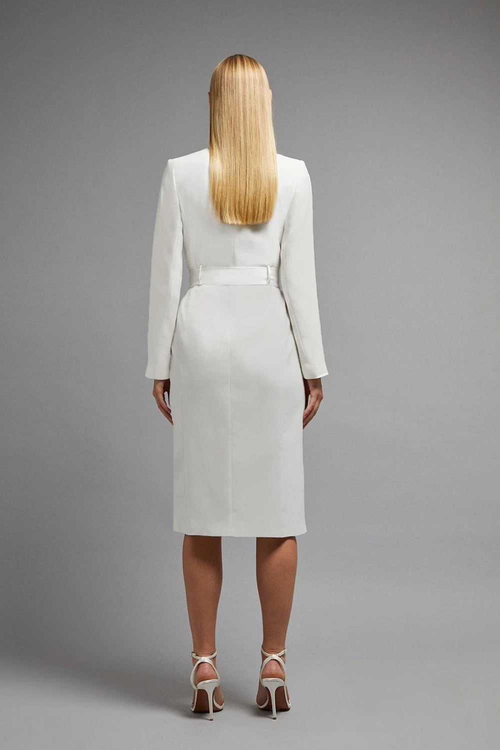 Main: 89% Polyester, 11% Elastane. Lining: 100% Polyester. Dry clean only. Length 123cm
