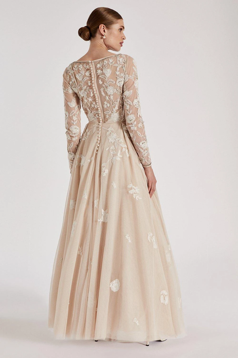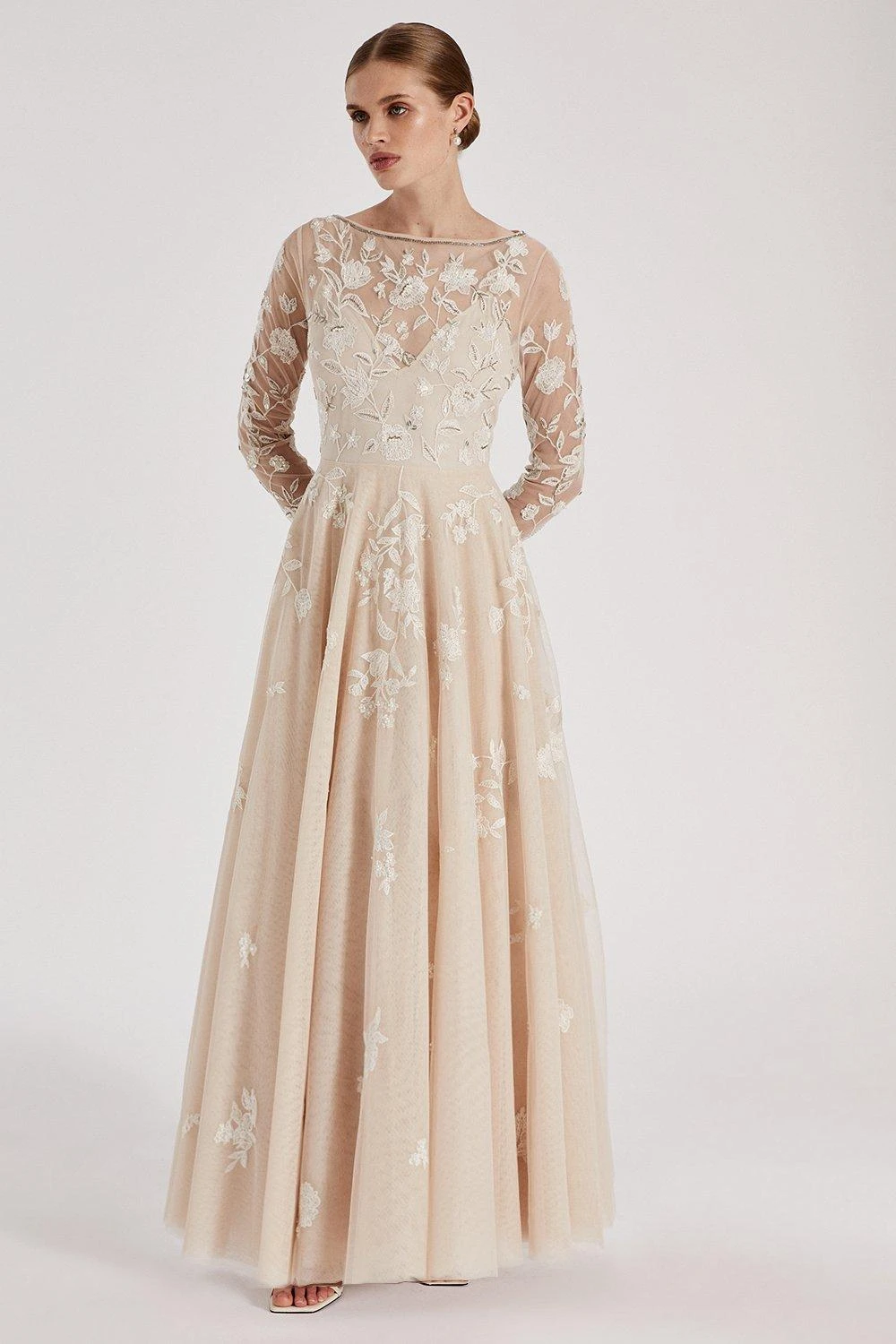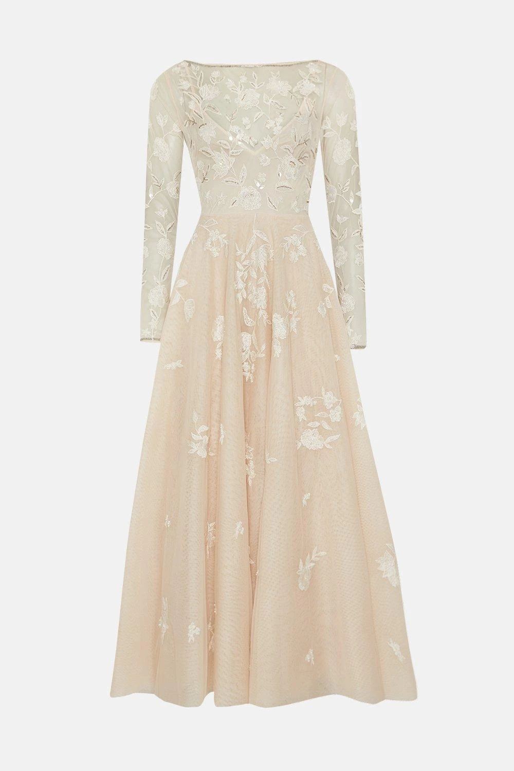Part of The Royal School of Needlework x Coast collection. A traditional silhouette adorned with expert embroidery work consisting of floral details, inspired by the Wildflower artwork. Featuring a romantic sheer overlay to capture a truly feminine essence. ​