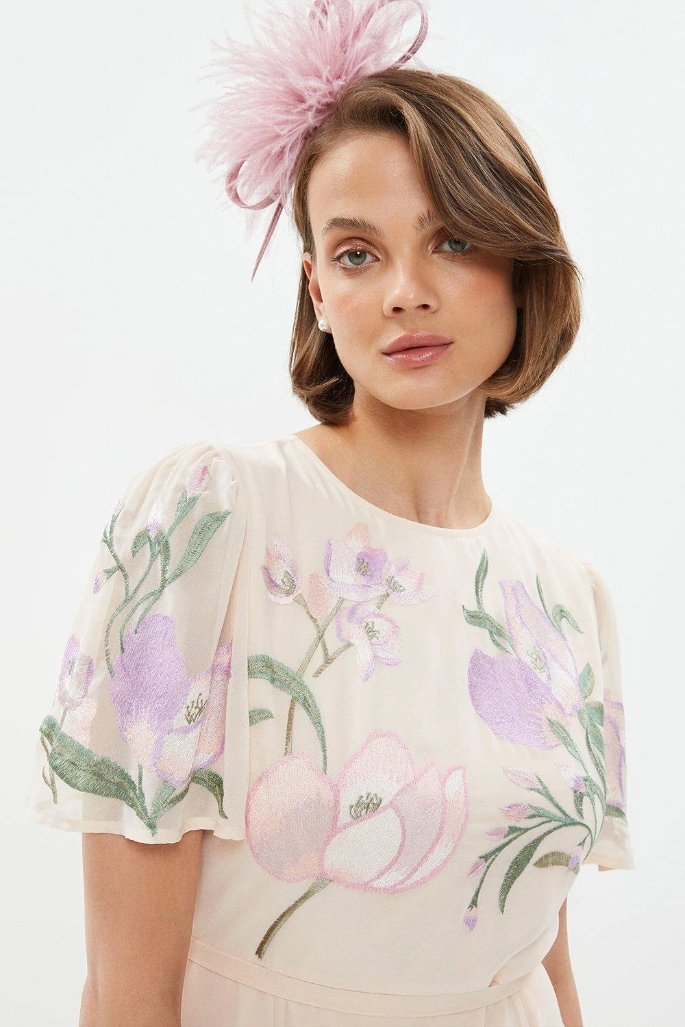Main: 100% polyester Lining: 100% polyester. Dry clean only. Length: 140cm