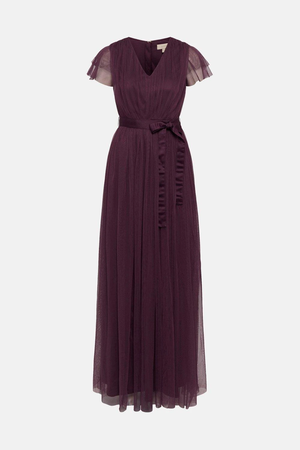 RSVP yes to every invitation with our striking tulle maxi dress in your arsenal. It shows off frilled sleeves, a waist-cinching belt and a flowing skirt that perfectly frames your favourite heels.