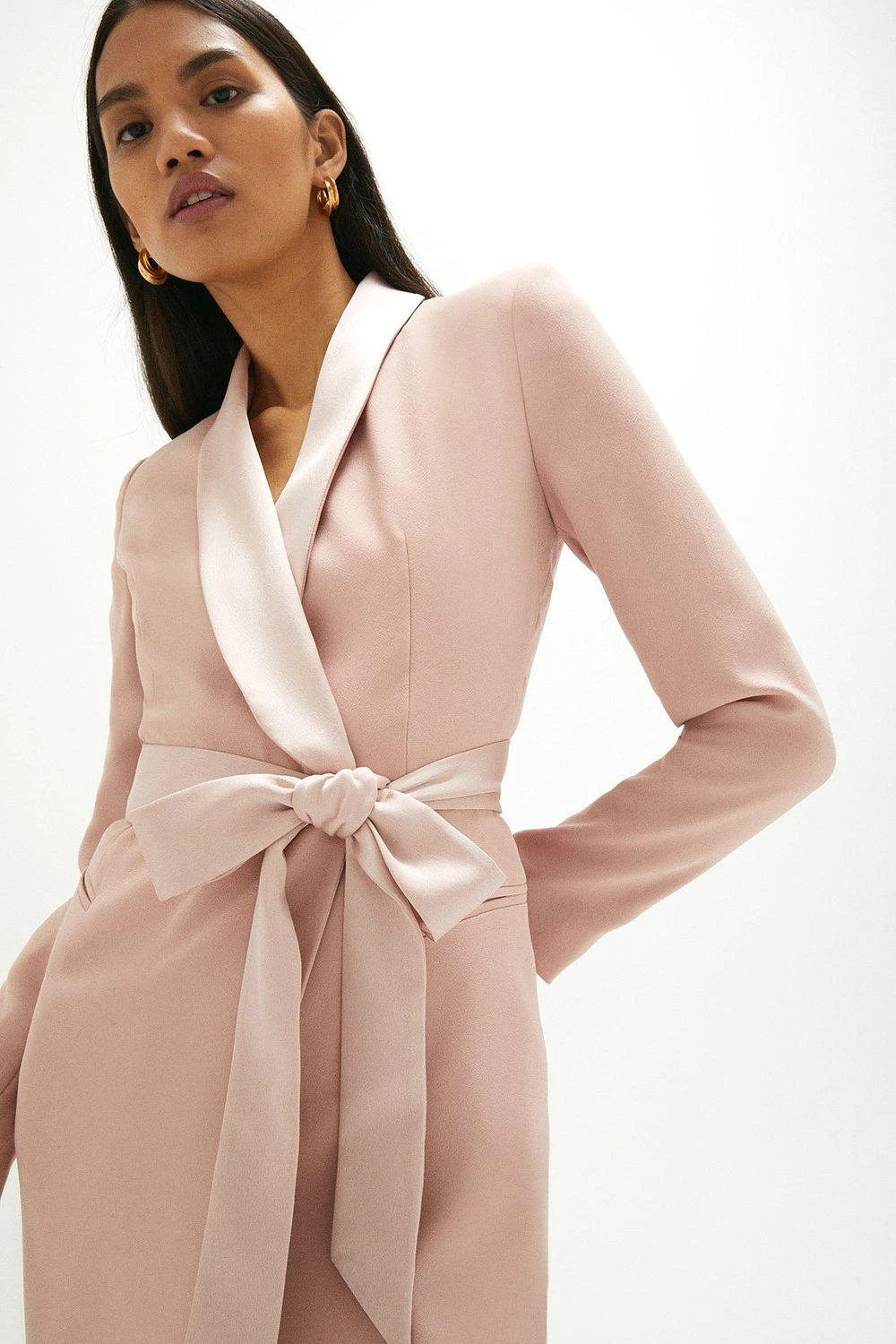 Main: 89% Polyester, 11% Elastane. Lining: 100% Polyester. Delicate dry clean only. Length 122cm.