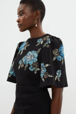 Coast Embellished Floral Jersey Flare Sleeve Dress